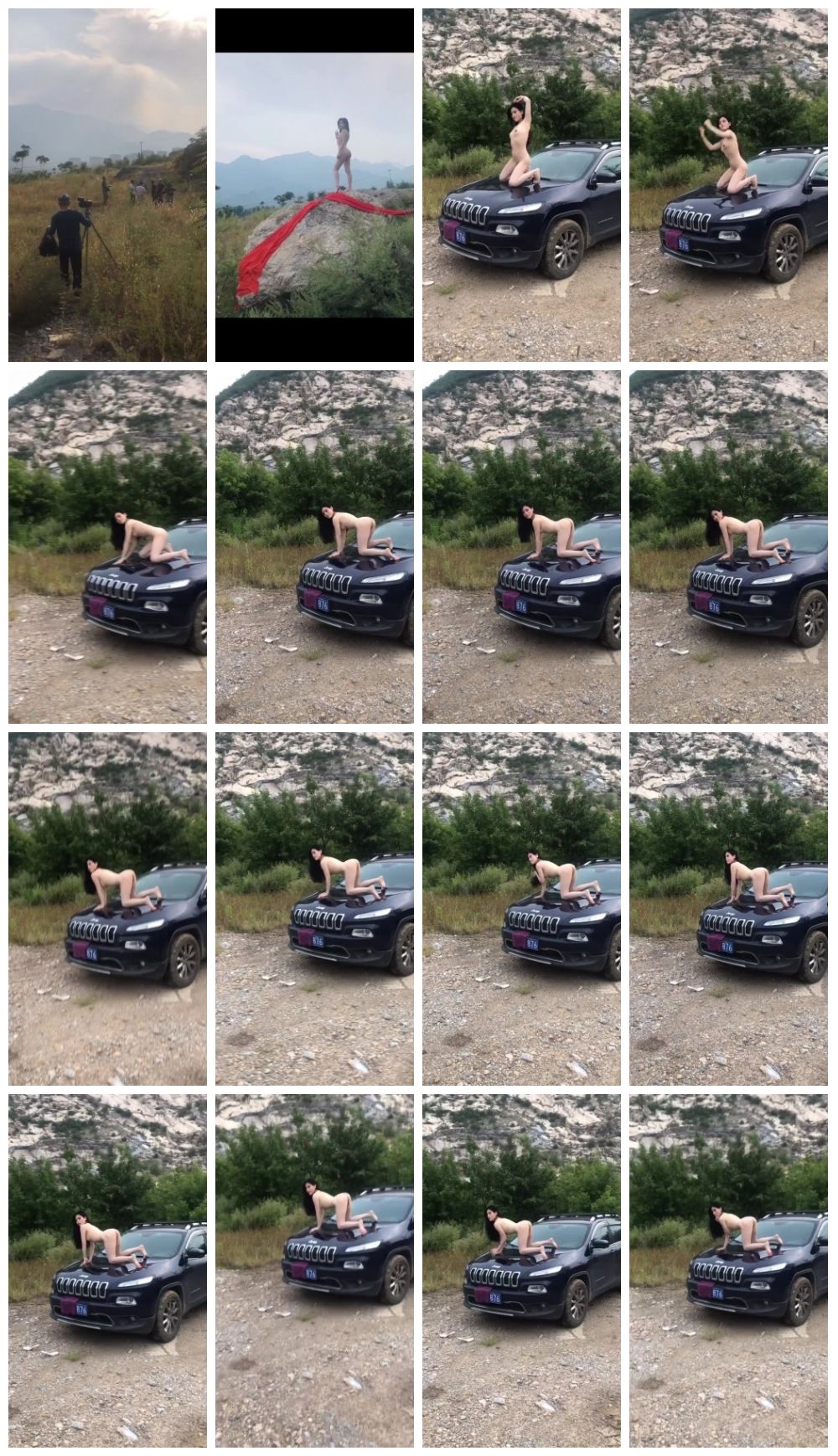 推特上海反差女神,清纯大眼睛极品模特【白甜】大尺度视图,户外裸拍露乳开车全裸压马路