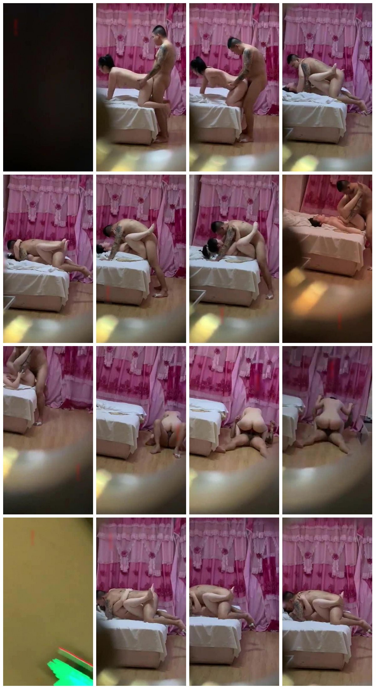 家庭小旅馆房间传来刺激的呻吟透过猫眼一看纹身大哥和大奶美少妇从床上干到地板